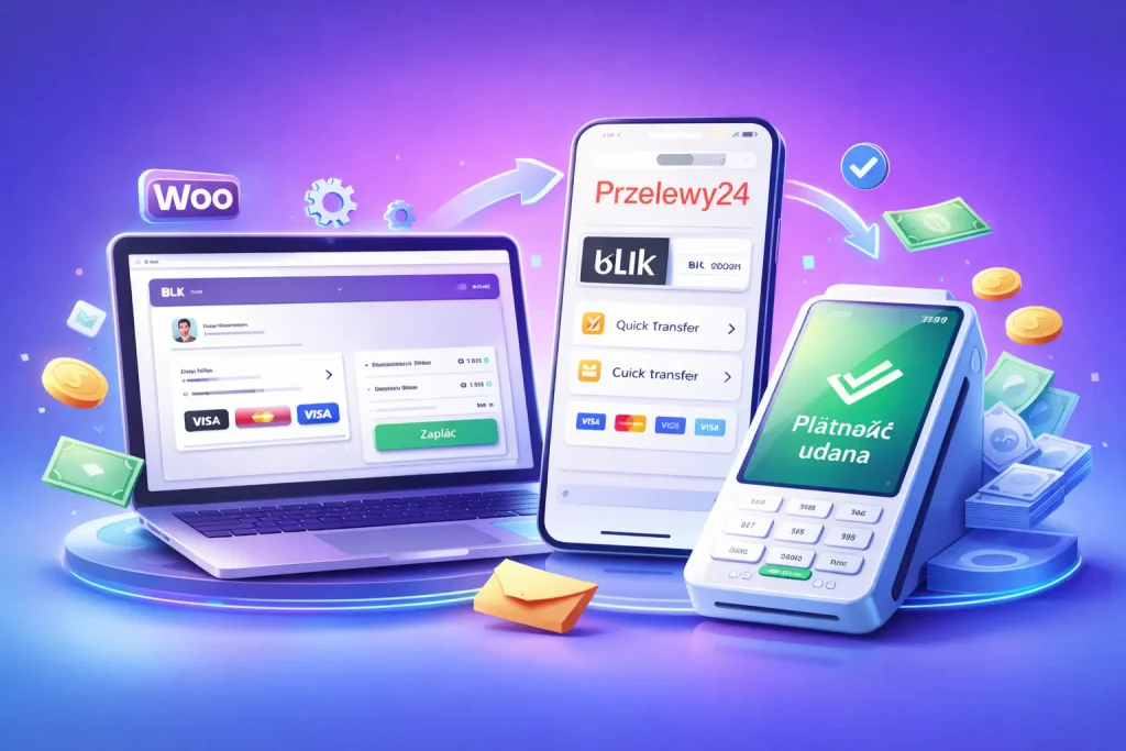 Płatności to ten fragment sklepu, który musi działać bez gadania. Klient ma zapłacić szybko, dostać potwierdzenie i iść dalej, a Ty masz od razu widzieć w WooCommerce, że zamówienie jest opłacone. Jeśli tu coś się rozjeżdża, to pojawiają się zgłoszenia, ręczne poprawianie statusów i klasyczne „zapłaciłem, ale nie mam zamówienia”. Znajdziesz tutaj informacje jak skonfigurować Przelewy24, co konkretnie ustawić w Przelewy24 WooCommerce, żeby płatności były stabilne i żeby checkout nie robił Ci problemów przy normalnej sprzedaży.