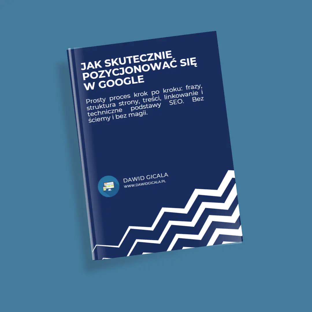 Praktyczny e-book o tym, jak skutecznie pozycjonować się w Google bez zgadywania: dobór fraz, struktura strony, treści pod intencję, linkowanie wewnętrzne, podstawy techniczne i praca w Google Search Console. Jeśli chcesz rozumieć, co realnie robi różnicę w SEO i jak układać działania w kolejności, ten materiał jest dla Ciebie. Wkrótce dostępne.